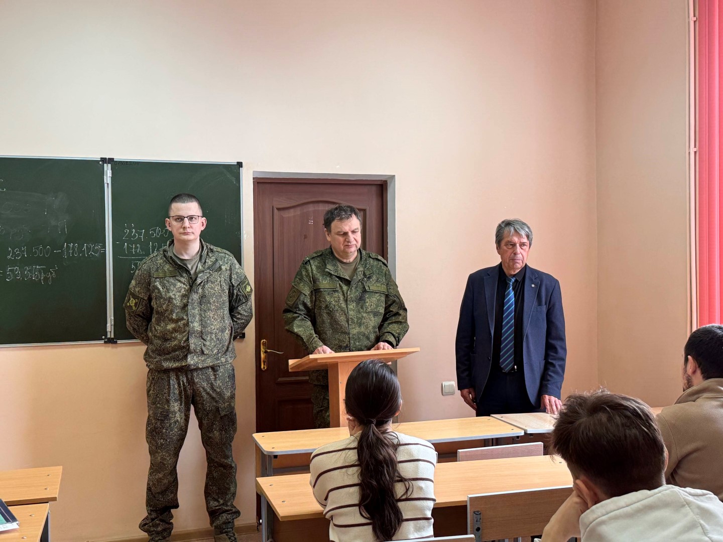 17 марта 2026 года в институте (филиале) состоялась встреча обучающихся с заместителем главы администрации Минераловодского муниципального округа Мельниковым О.А., военным комиссаром Минераловодского муниципального округа и городского округа города-курорта Железноводска Ставропольского края подполковником Жуковым А.А., инструктором пункта отбора на военную службу по контракту г. Ставрополь, сержантом Кочкаевым А.В.
