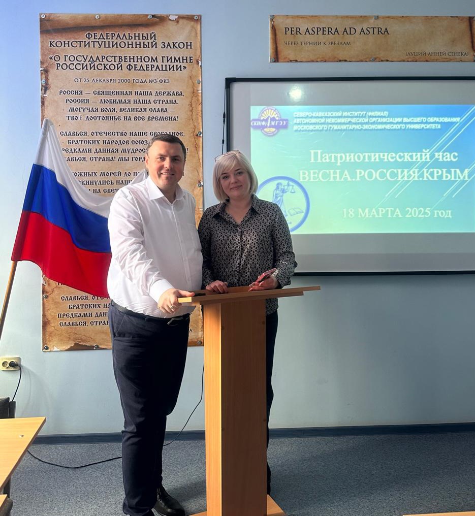 День воссоединения Крыма с Россией, отмечаемый 18 марта, стал важной вехой в истории России и Крыма, и незабываемой датой в Северо-Кавказском институте (филиале) АНО ВО МГЭУ.