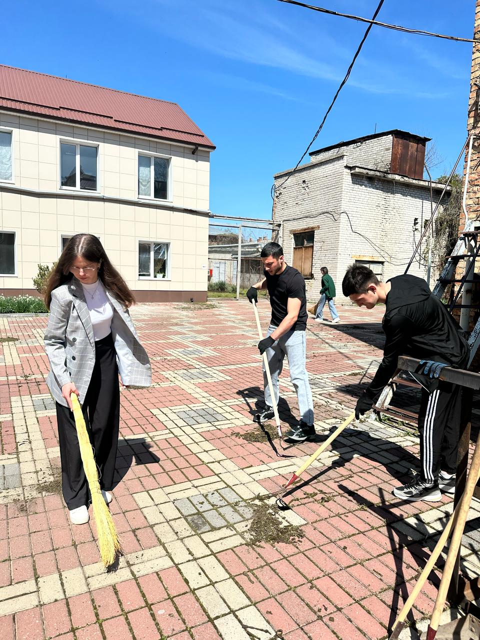 В рамках субботника 24.04.2025 г. обучающиеся Северо-Кавказского института (филиала) АНО ВО МГЭУ приняли активное участие в благоустройстве территории института (филиала). В ходе уборки, работая слаженными командами, подмели территорию, собрали мусор, листья и ветки.