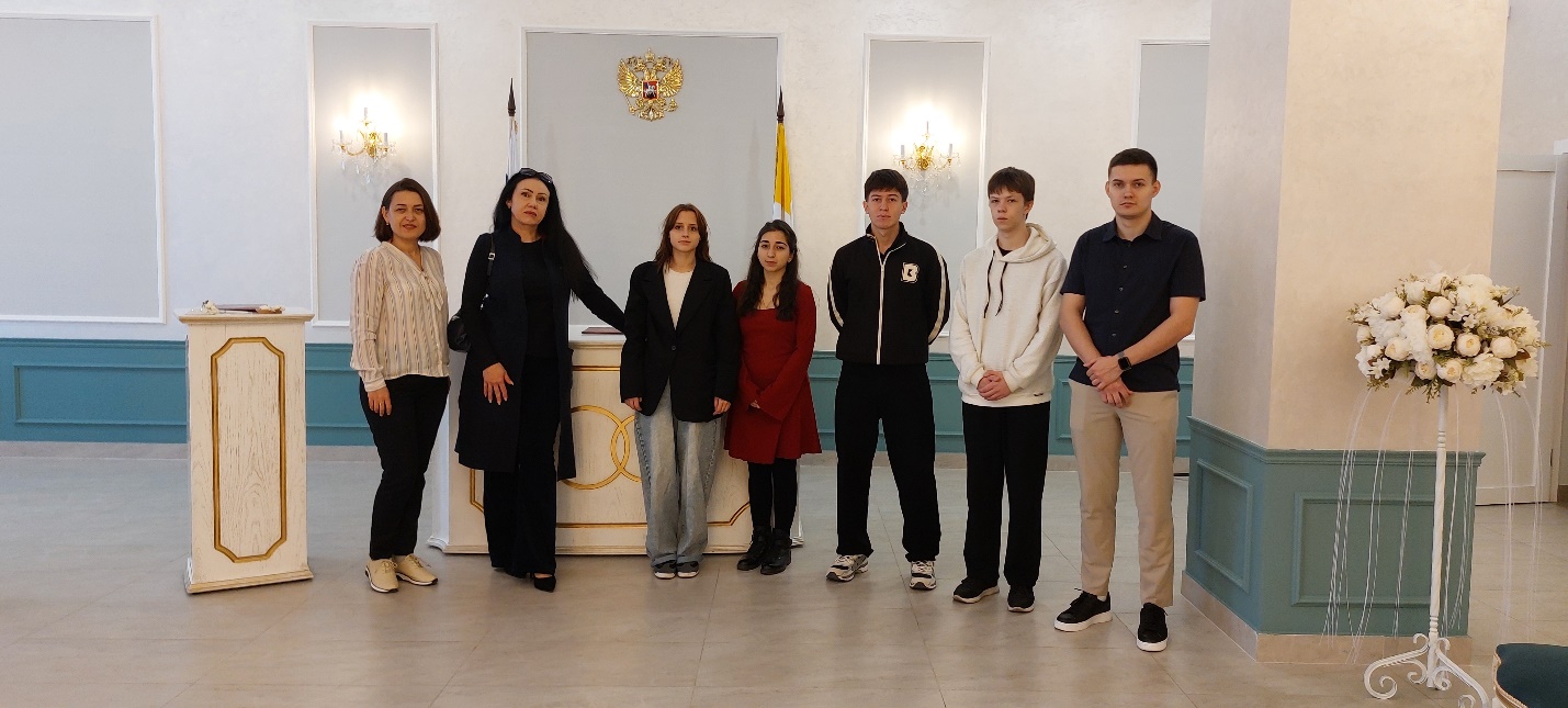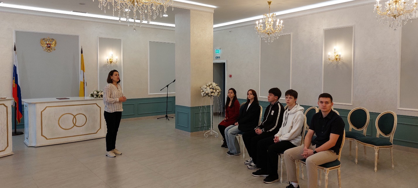 Обучающимся был продемонстрирован зал торжеств, где проводятся регистрации браков, чествование золотых юбиляров, многодетных семей.