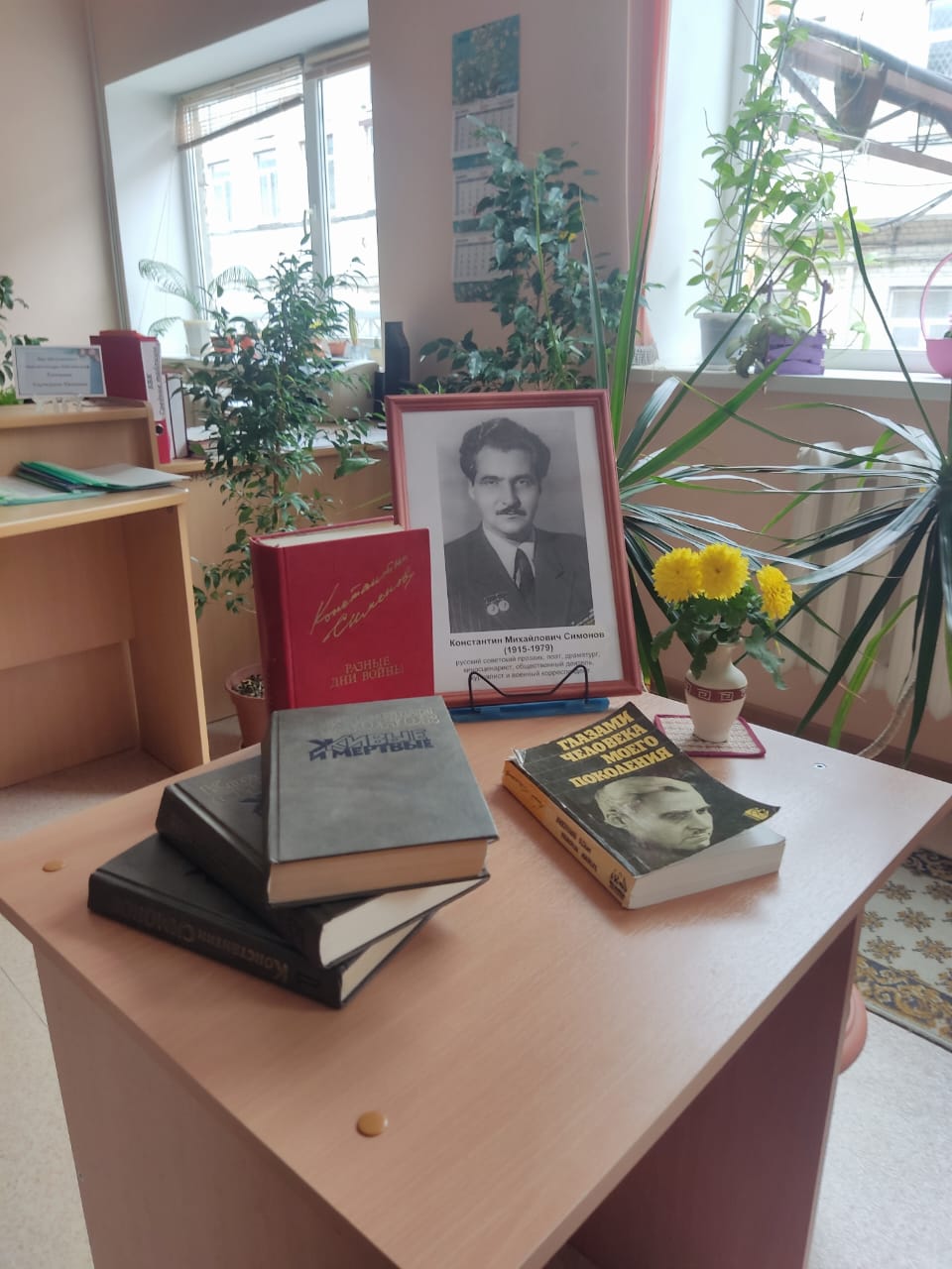 На встрече прозвучали записи стихов К. Симонова, а также была представлена книжная выставка, посвященная писателю.