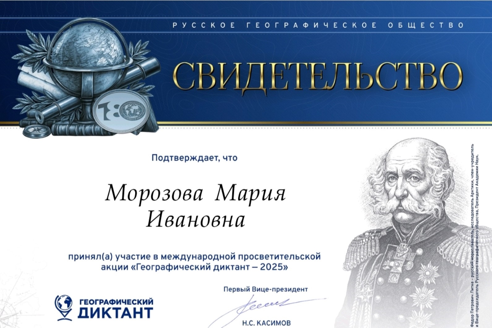 22 декабря 2025 года каждый участник, успешно прошедший географический диктант, получил именное свидетельство, подтверждающее факт его успешного прохождения и наличия географических знаний родной страны.