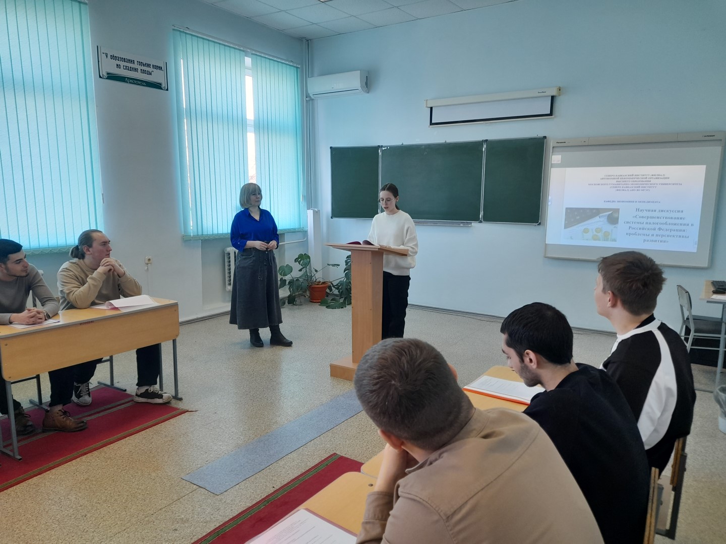 12 февраля 2026 г. на кафедре экономики и менеджмента прошла научная дискуссия «Совершенствование системы налогообложения в Российской Федерации: проблемы и перспективы развития». В дискуссии принимали участие обучающиеся первого и третьего курсов направления подготовки 38.03.01 Экономика.
