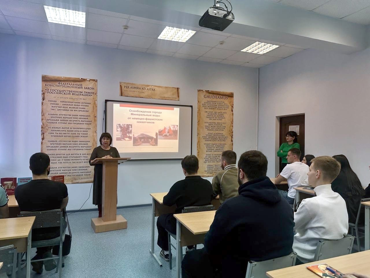 13 января 2025 года, в рамках мероприятия заведующий библиотекой Степанова Людмила Валентиновна выступила для обучающихся по программам СПО с докладом о тяжелых годах оккупации Минеральных Вод и рассказала о ключевых боях, которые привели к освобождению города. Также был представлен обзор литературы, посвящённой историческому контексту и событиям, связанным с Великой Отечественной войной, касающимся родного города.
