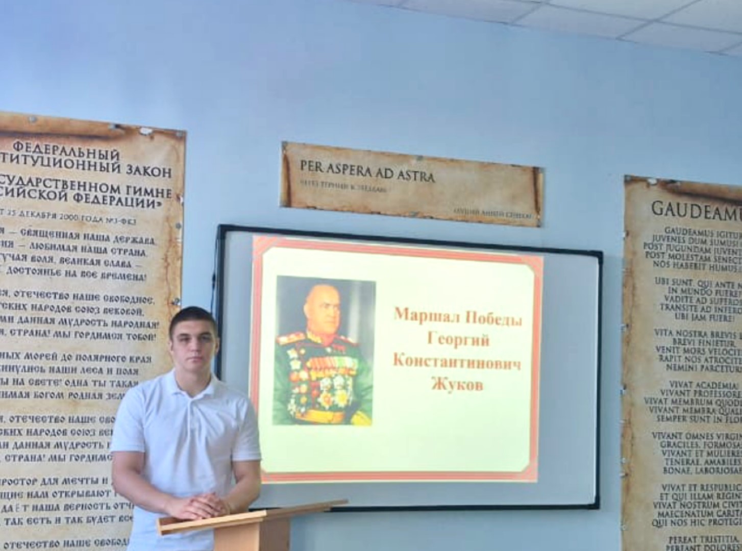 Рзянин Роман свое выступление посвятил «Маршалу Победы» - Жукову Георгию Константиновичу, советскому полководцу, Маршалу Советского Союза, четырежды Герою Советского Союза, на счету которого множество советских и иностранных медалей и орденов.